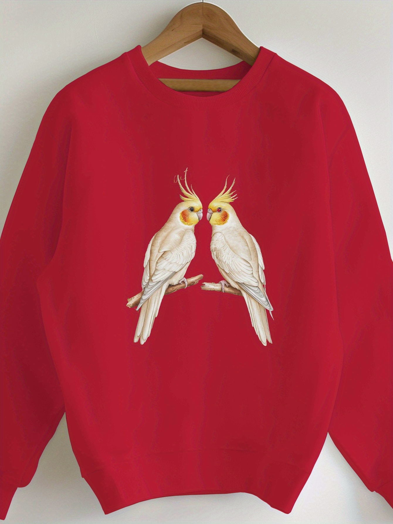 Branch Two Elegant Cockatiels Women's Casual Sweatshirt - Black Geometric Bird & Branch Design, 100% Polyester, Machine Washable, Regular Fit Round Neck for Autumn/Winter, Everyday Comfort, Natureinspired Design, Easy Care Clothing