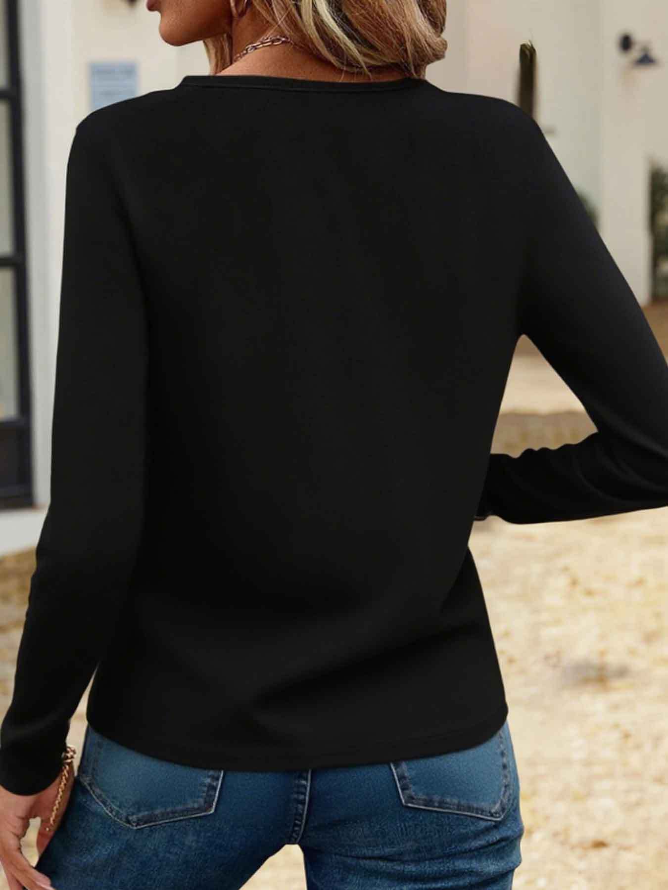 [Breast Cancer Awareness] Women's V-Neck T-Shirt | Pink Ribbon & Butterfly Graphic - "You Are Not Alone" Breast Cancer Awareness Design, Casual Long Sleeve Top for Spring/Summer/Fall