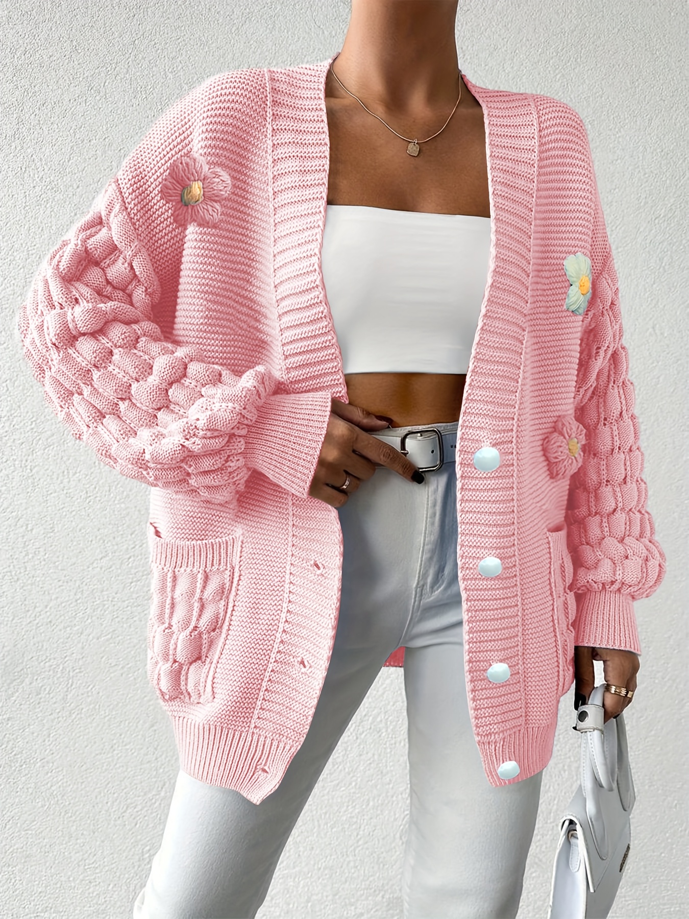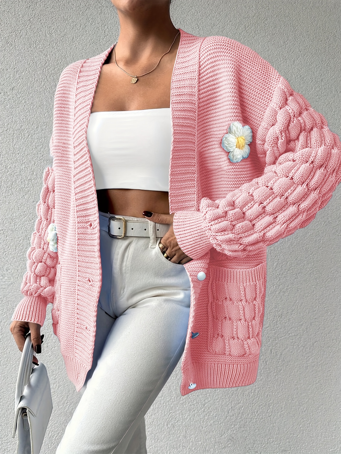 [Fresh Cardigan] Plus Size Women's Loose Cardigan | Sweet and Fresh Style, Floral Decoration, Versatile Fashion Piece for Spring, Autumn, and Winter