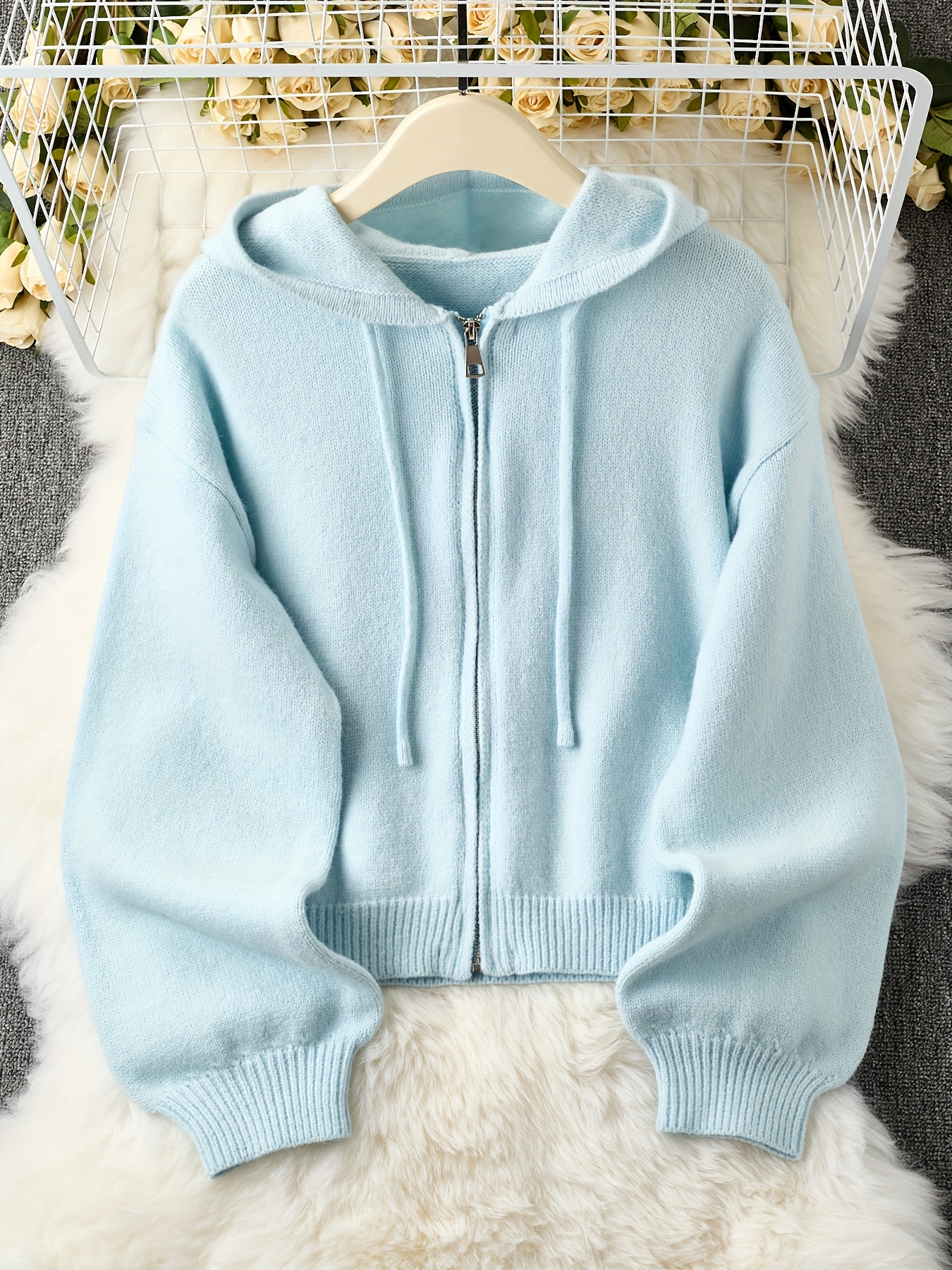 Plus Size - Plus Size - Women'S Light Yellow Hooded Cardigan - Casual Zip-Up Sweater with Ribbed Cuffs, Long Sleeves, and Front Pockets, Perfect for Fall/Winter Layering, Cozy Fall Apparel | Hooded Sweater | Construction, Sweater Cardigan