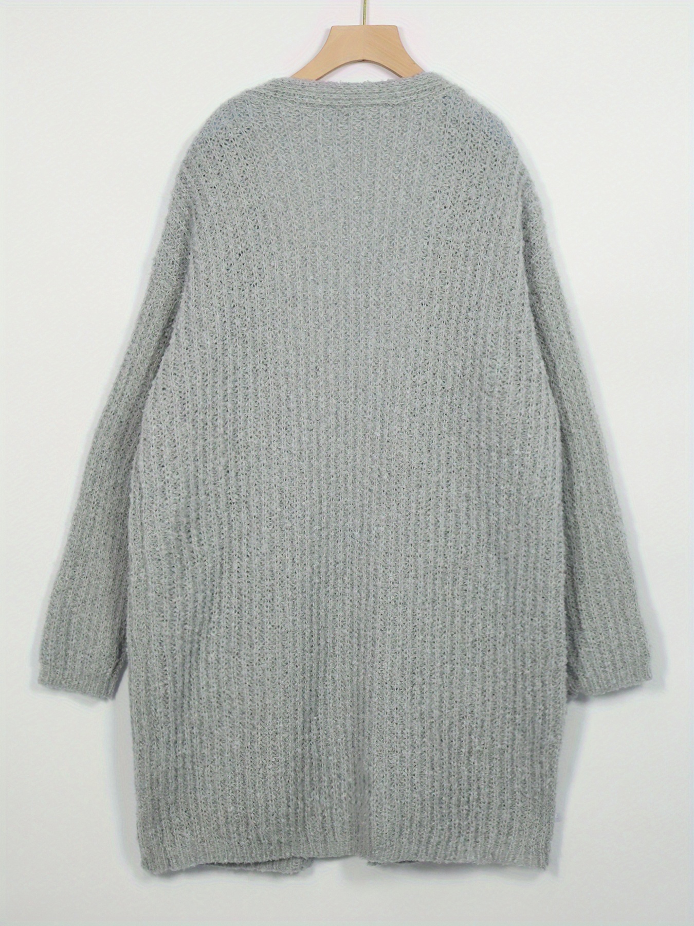 Plus Size - Plus Size Women'S Elegant Vintage Cardigan - Cozy V-Neck with Pockets, Light Gray, Long Sleeve, Fall/Winter Warmth, Casual Chic Style, Autumn Winter Apparel | Vintage Style Cardigan | Construction, Cardigan Sweater