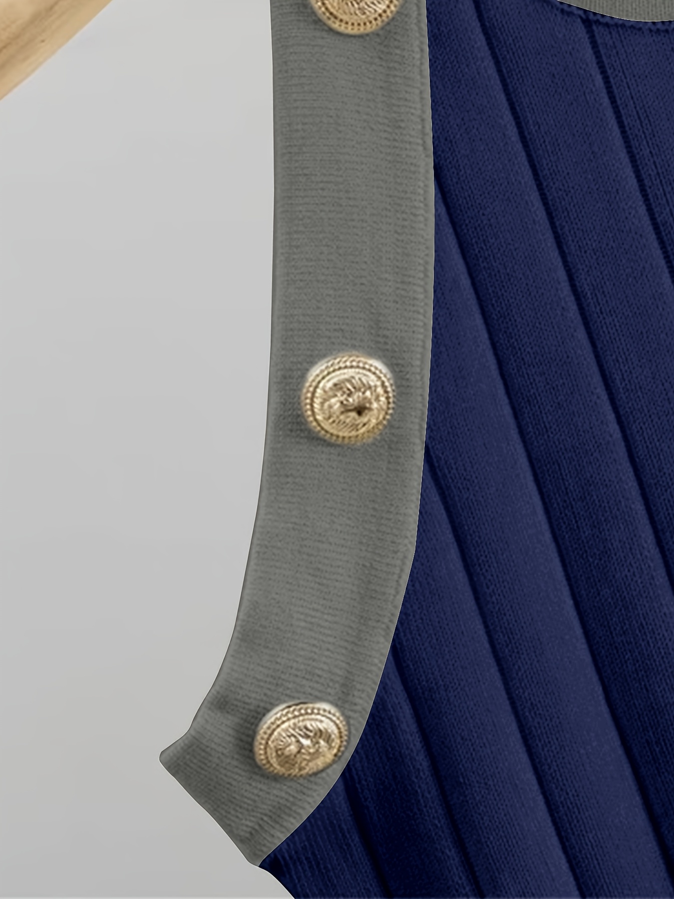 Plus Size - Women'S Plus Size Two-Piece Set - Navy Blue Ribbed Dress & Cardigan Vest, High Waist, Button-Up, Casual Style for Spring/Fall, Versatile Clothing | Buttonup Cardigan | Construction, Plus Size Sweater Dress